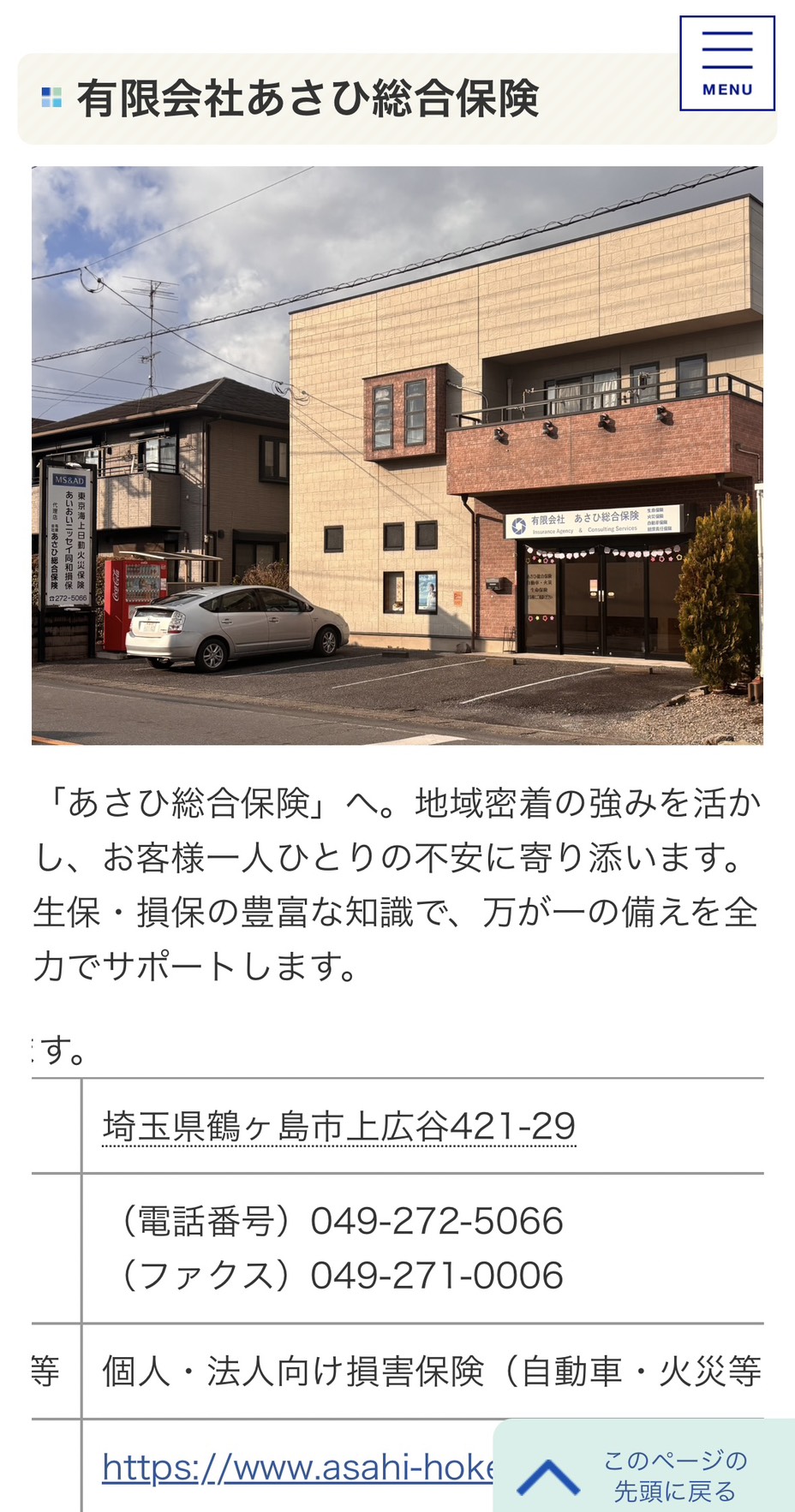 鶴ヶ島市HPにある鶴ヶ島市企業紹介に掲載していただきました。 あさひ総合保険 X Facebook LINE コピー 2026.03.25 🏢鶴ヶ島市企業紹介とは… 👉鶴ヶ島市内で操業している地元企業を市内外に広く知っていただくため、市内の企業をご紹介しています✨ 鶴ヶ島市にある仕事を知っていただき、新たに学校を卒業された方、市内で働きたい方、転職を考えている方など、参考にご覧いただき就職活動などに活用できるものとのことです! お時間のある時にぜひ、鶴ヶ島市企業紹介をチェックしてみてください。